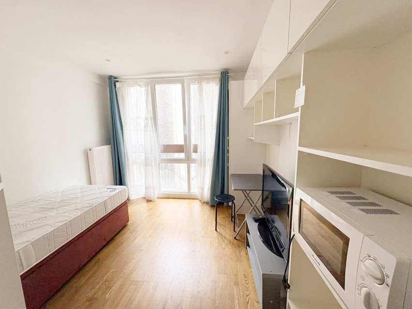 【格局】位于法国3楼带电梯,15平studio,独立厨房,独立卫浴,中央供暖热水,家具有床、桌椅、冰箱、微波炉、衣柜。没有洗衣机,楼下有洗衣房。